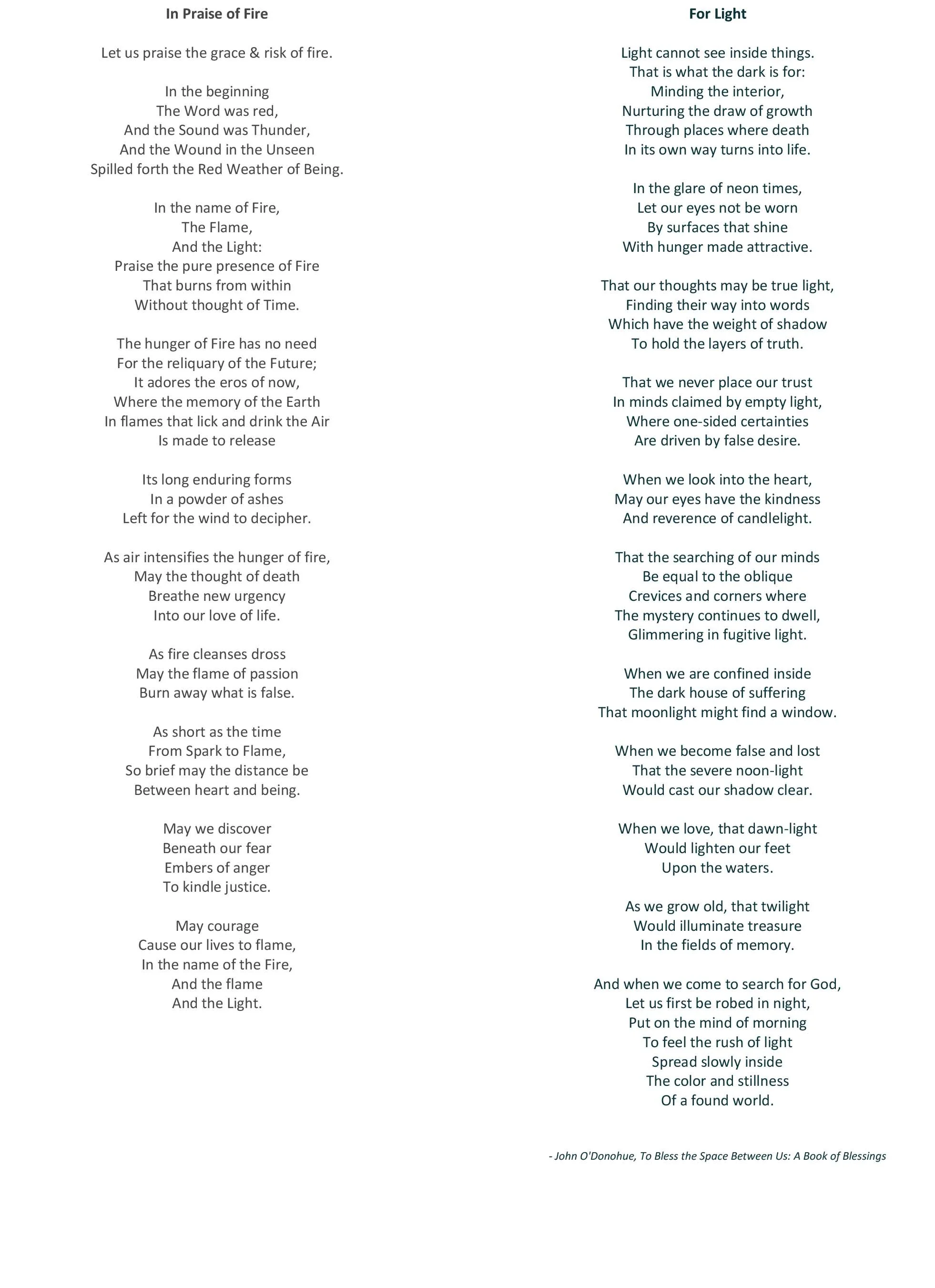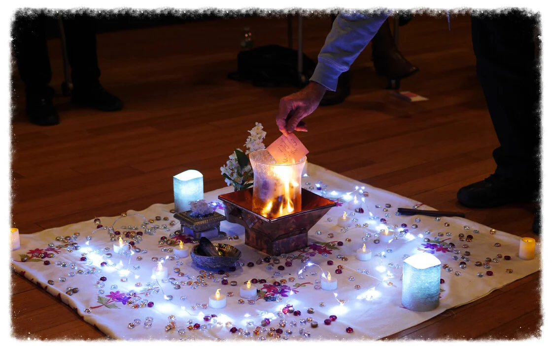 To make the ritual truly meaningful for each one of us, we are asking you to bring with you a small object (anything you choose) that has personal meaning and value for you; but one that you feel you are ready to give away in a spirit of passing it along to someone else who might need it now.